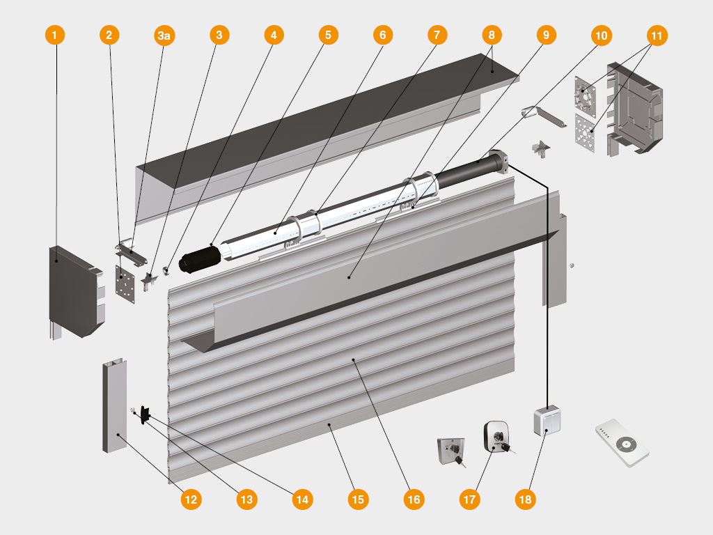 Короб в сборе. Представляет собой собранный защитный короб с боковыми крышками, валом и капсулами, механизмом управления.